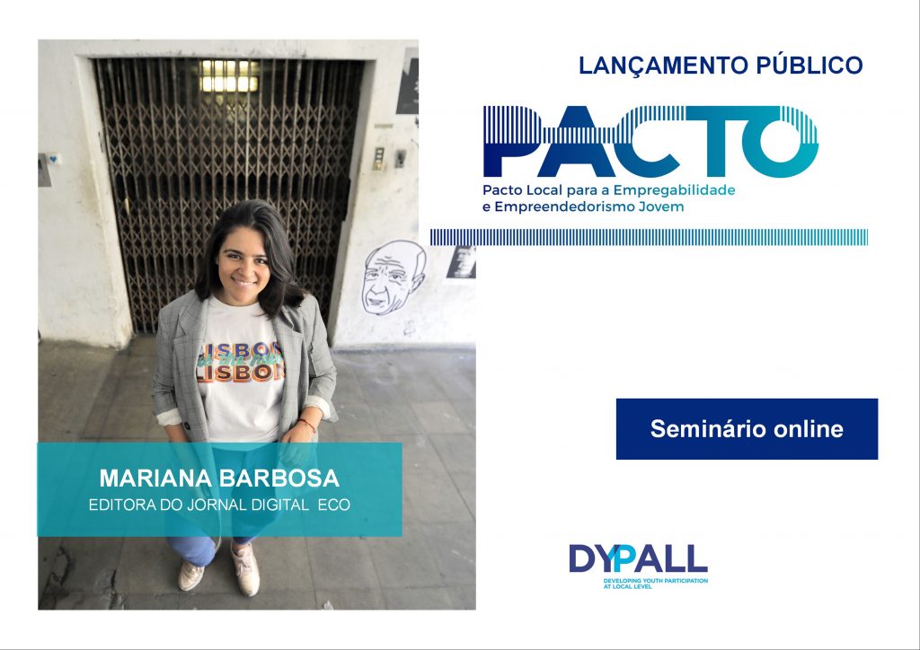 Já Mariana Barbosa, com as suas histórias recolhidas por mais de 10 anos sobre empreendedores e incubadoras de empresas, ajudou a enquadrar a realidade de quem procura em Portugal ultrapassar as dificuldades de ter um emprego, apostando no empreendedorismo. No final, foi possível também auscultar a opinião do jovem Nuno Almeida em busca de primeiro emprego, que trouxe também interessantes perspetivas sobre a situação de procura de emprego sem experiência profissional prévia. O seminário está disponível em streaming na Página de Facebook do Pacto.