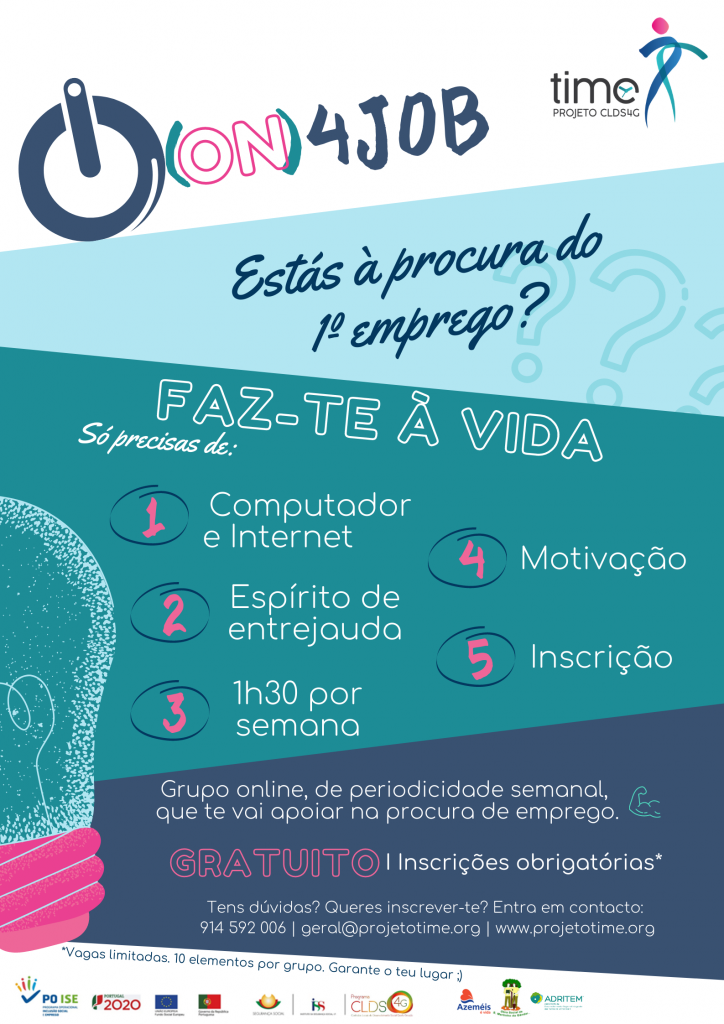 A CM de Oliveira de Azeméis, em parceria com a CLDS 4G, criou um grupo online, de periodicidade semanal, para apoiar jovens na procura de 1º emprego. O jovem precisa de ter acesso a computador, internet e dispor de 1h30 por semana.