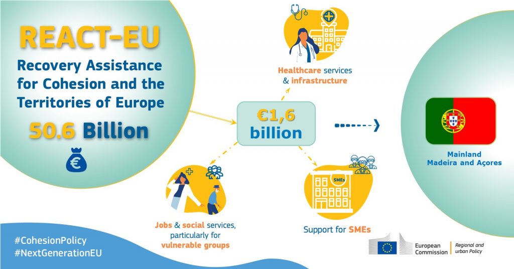 A Comissão Europeia lançou um ambicioso plano de recuperação, com financiamento que provém da iniciativa REACT-EU e é implementado através da alteração de dois programas operacionais que combinam o Fundo Europeu de Desenvolvimento Regional e o Fundo Social Europeu.