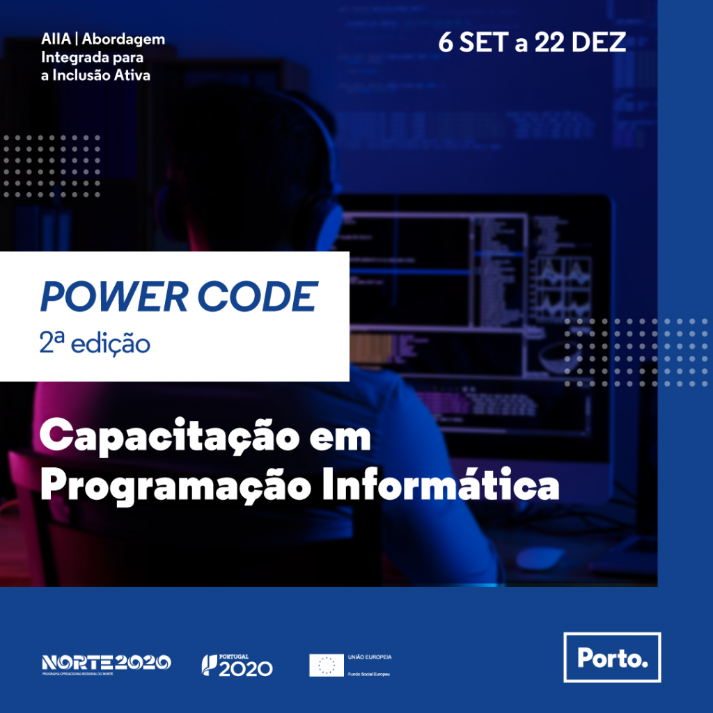 A Cidade das Profissões do Porto, regressa com a 2ª Edição do Power Code, um programa de capacitação para o desenvolvimento de competências em programação informática, tendo em vista a reconversão profissional de públicos desfavorecidos, especialmente jovens em situação NEET e desempregados de longa duração, de forma a potenciar o seu (re)ingresso profissional no mercado de trabalho.