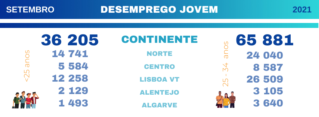 Desemprego Jovem – Setembro 2021 – Fonte: IEFP, I.P. Estatísticas Mensais por Concelhos