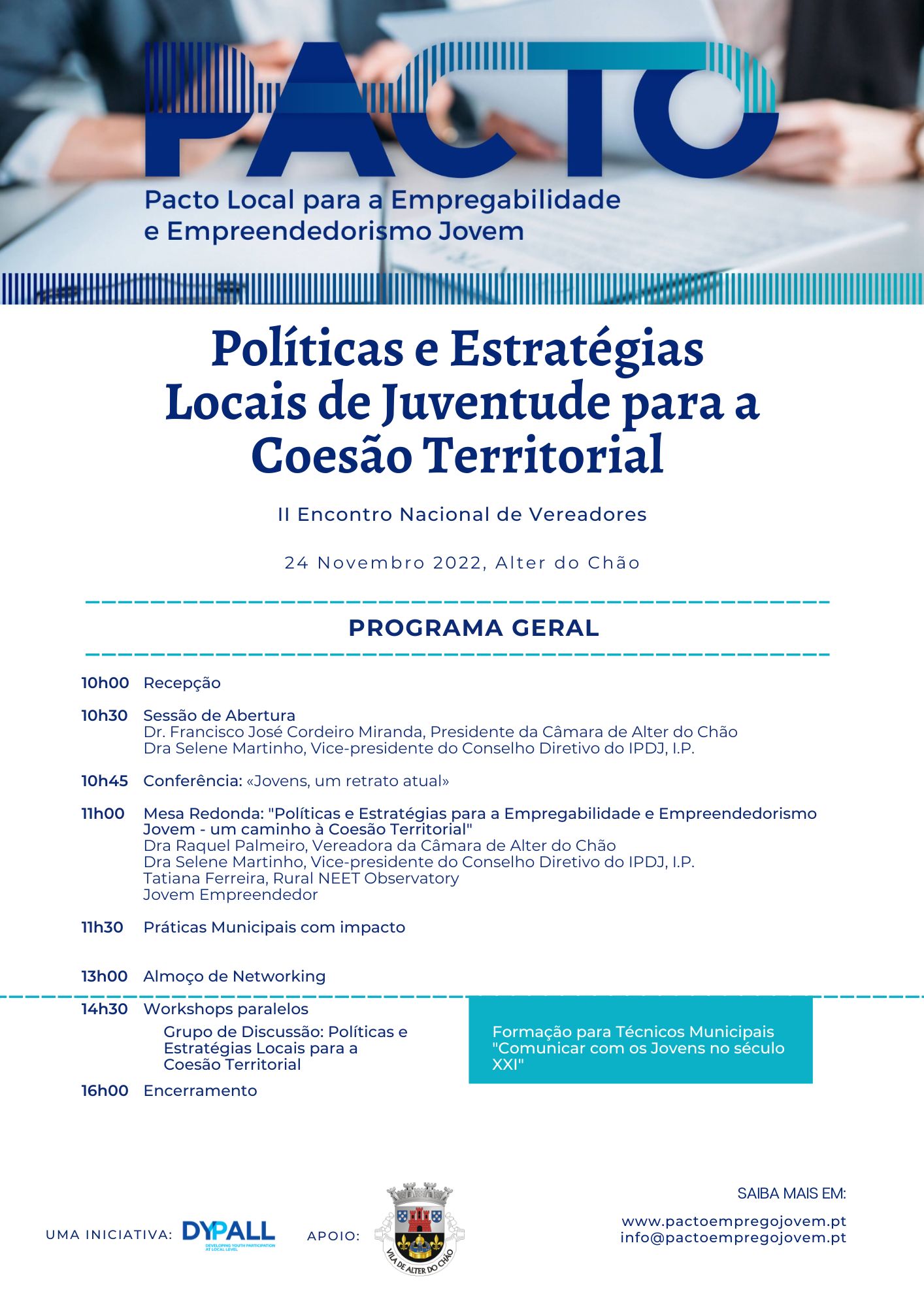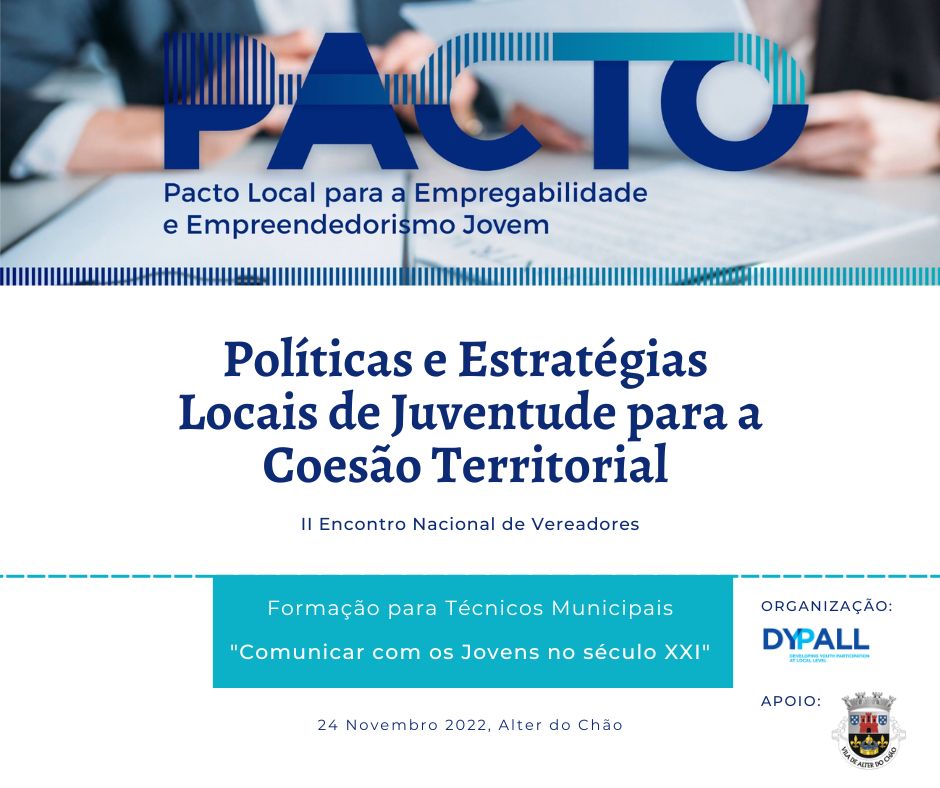 No âmbito da iniciativa PACTO Local para a Empregabilidade e Empreendedorismo Jovem, organiza-se um II Encontro Nacional de Vereadores, em Alter do Chão, no dia 24 de novembro de 2022.