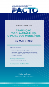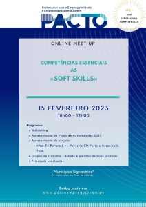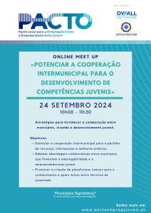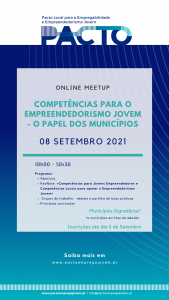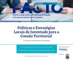O Pacto Local para a Empregabilidade e Empreendedorismo Jovem é uma iniciativa de networking entre municípios comprometidos em oferecer aos seus jovens mais e melhores oportunidades para o seu futuro, criando condições para o seu desenvolvimento pessoal, social e profissional. O PACTO Local para a Empregabilidade e Empreendedorismo Jovem dará… Leia mais: Meet Up 15.02.2023 «Competências Essenciais – as Soft Skills» - II Encontro Nacional de Vereadores – 24 de novembro 2022