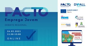 O PACTO lançado pela DYPALL Network é apresentado, em colaboração do Europe Direct Algarve e a entidade de acolhimento, CCDR Algarve, com a ambição de reunir o maior número de atores regionais, comprometidos voluntariamente na resposta à anunciada crise financeira e a consequente elevada taxa de desemprego dos jovens, provocada… Leia mais: PACTO Emprego Jovem – Debate Regional – 26 de Maio 2021 - Meet Up 05.05.2021 «Transição Escola-Trabalho – o papel dos municípios»