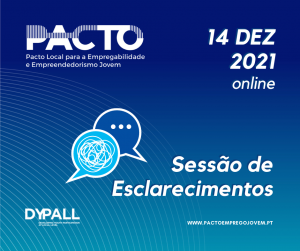 O Pacto Local para a Empregabilidade e Empreendedorismo Jovem é uma iniciativa de networking entre municípios comprometidos em oferecer aos seus jovens mais e melhores oportunidades para o seu futuro, criando condições para o seu desenvolvimento pessoal, social e profissional. Em 2025, a DYPALL Network, enquanto entidade coordenadora do PACTO, vai… Leia mais: Meet Up 15.07.2025 «Promoção de Competências Digitais Essenciais» - Meet Up 26.11.2024 «Estratégias Inovadoras para a Fixação de Jovens nos Territórios»