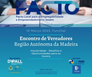 No âmbito da iniciativa PACTO Local para a Empregabilidade e Empreendedorismo Jovem, organiza-se um primeiro Encontro Regional de Vereadores da Região Autónoma da Madeira, no Funchal, no dia 10 de março de 2023. Este evento presencial, co-organizado com a Câmara Municipal do Funchal, e com o apoio da AMRAM e… Leia mais: Encontro Regional de Vereadores – 10 de março 2023 - Meet Up 15.02.2023 «Competências Essenciais – as Soft Skills»