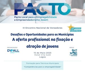 O Pacto Local para a Empregabilidade e Empreendedorismo Jovem é uma iniciativa de networking entre municípios comprometidos em oferecer aos seus jovens mais e melhores oportunidades para o seu futuro, criando condições para o seu desenvolvimento pessoal, social e profissional. Em 2024, a DYPALL Network, enquanto entidade coordenadora do PACTO, vai… Leia mais: Meet Up 09.04.2024 «Inovação e Criatividade no Trabalho com Jovens» - Meet Up PRESENCIAL 14.12.2023 «COMPETÊNCIAS DE CIDADANIA EMPREENDEDORA PARA JOVENS – Formação para técnicos municipais»