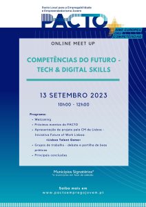 O Pacto Local para a Empregabilidade e Empreendedorismo Jovem é uma iniciativa de networking entre municípios comprometidos em oferecer aos seus jovens mais e melhores oportunidades para o seu futuro, criando condições para o seu desenvolvimento pessoal, social e profissional. O PACTO Local para a Empregabilidade e Empreendedorismo Jovem dando continuidade às… Leia mais: Meet Up 13.09.2023 «Competências do Futuro – Tech & Digital Skills» - Meet Up 14.06.2023 «Competências para a Empregabilidade e Empreendedorismo»