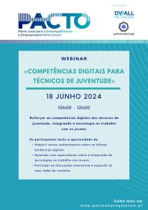O Pacto Local para a Empregabilidade e Empreendedorismo Jovem é uma iniciativa de networking entre municípios comprometidos em oferecer aos seus jovens mais e melhores oportunidades para o seu futuro, criando condições para o seu desenvolvimento pessoal, social e profissional. Em 2024, a DYPALL Network, enquanto entidade coordenadora do PACTO, vai… Leia mais: Meet Up 24.09.2024 «Potenciar a Cooperação Intermunicipal para o Desenvolvimento de Competências Juvenis» - Webinar 18.06.2024 «Competências Digitais para os Profissionais de Juventude»